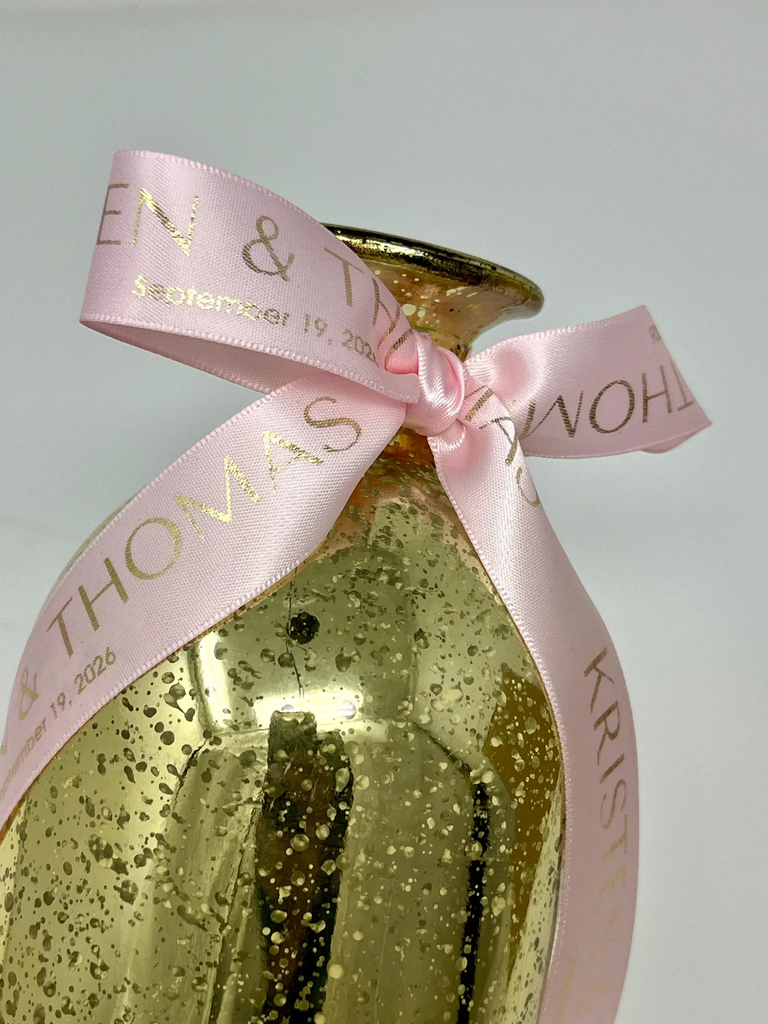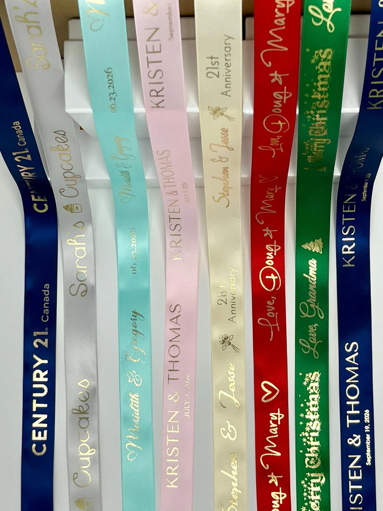 Personalized satin ribbon for stunning gifts & events. Use for weddings, holidays, business branding, and any special occasion. 7/8" wide.