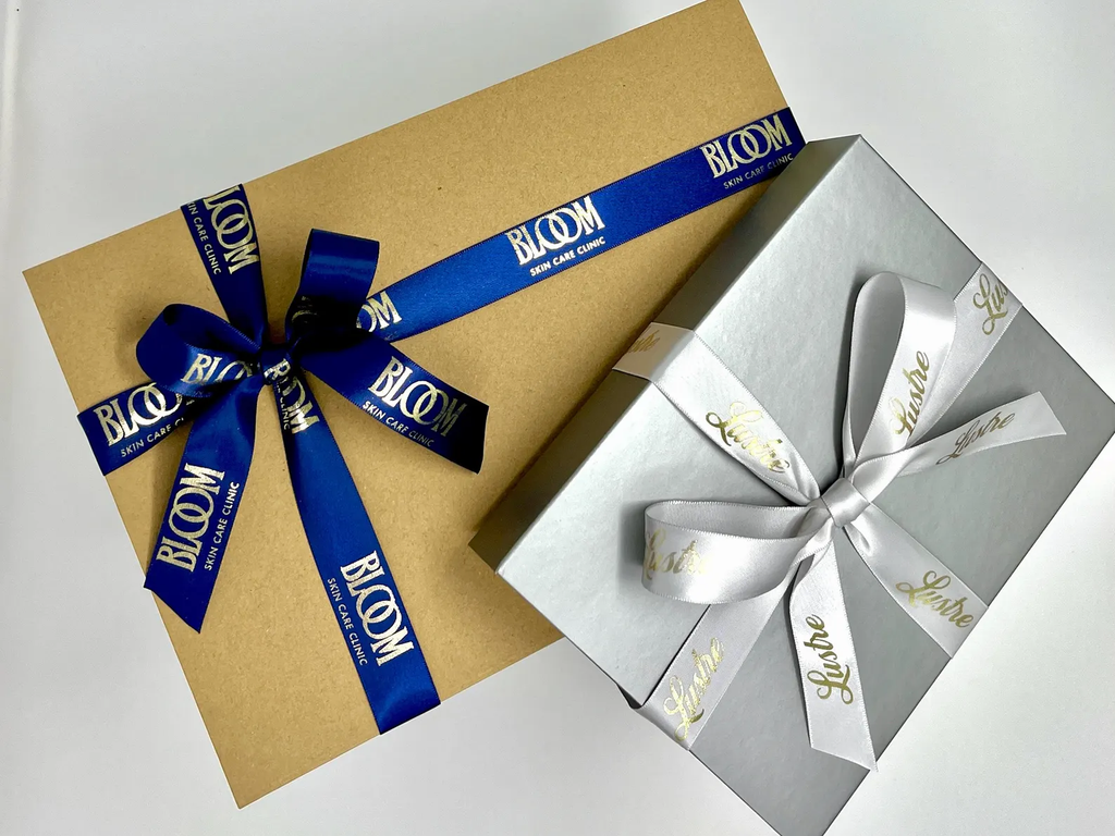 Want to make an upcoming special day especially memorable? Just add some personalized satin ribbon. Beautifully printed with metallic-gold foil, this is a great way for adding an important personal touch and at the same time, a stunning, eye-catching accent. The smoothness of satin and the elegance of gold are both luxurious elements that have been used to enhance the value of products and occasions throughout the world. Personalized satin ribbon quickly adds a wow-factor to gift boxes, gift bags, table centrepieces, wine glass placeholders, flower bouquets, gift tags, invitations, ornaments, lanyards, promotional items, corporate packaging and so much more.